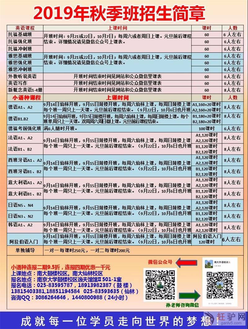 报名及咨询地址:南京市鼓楼区汉口路22号南大鼓楼校区逸夫馆2-501室,电话:83595787 18913982387