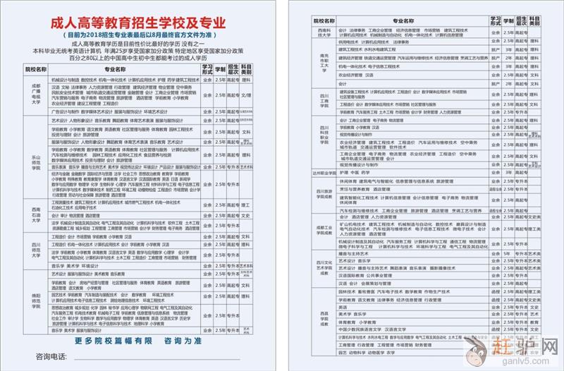 今年自贡的公务员,事业单位招聘岗位众多,越来越多的人?参加考公务员.你有没有因为学历不够而自责或后悔???低学历想升大专,大专想升本科g a n l v 5 c o m。为了工作加薪?为了报考好单位?为了提升自己?提早准备?未雨绸缪?学历以后都会用到?不要等到需要学历的时候才想到报名?那个时候已经晚了?!??2019较后一批自考专升本注册!错过多等半年!2020年学历改革,到时候考取会加大难度,学费也会涨一倍以上,学制会增加。所以想考取专本科的你,抓紧!!!???考试时间?(自考分为统考和校考)??1、统考时间?为4月,10月??2、校考时间?为6月,12月???报名条件:??专科:年满16岁、持有高中或者中专毕业证(也可无)xmeB。身份证??本科:年满16岁、持有大学专科毕业证或者在取得本科毕业证之前可以取得大学专科毕业证。身份证??考试科目:??统考6科,校考12科赶 驴 网。校考比较简单,着重放在统考上。较快1.5年拿证赶 驴 网。??报考院校:??西华师范大学、西南石油大学、西南财经大学、西南科技大学等等???热门专业:??专科:?汉语言文学、学前教育、法律、小学教育、工商企业管理、会计电算化、建筑施工技术与管理、数控技术应用、汽车维修与检测、会计电算化、工商企业管理、市场营销、人力资源管理等等。??本科:汉语言文学、法律、、工商企业管理、工程造价管理、学前教育、小学教育、建筑经济管理、汉语言文学教育、英语教育、会计、数学教育、播音与主持、石油工程、建筑经济管理、现代商务、会计、金融、市场营销、工程财务管理等等欢迎www.ganlv5.com。??更多院校及专业(高升专、专升本)