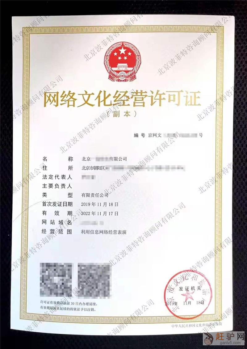 网络文化经营许可证简称“文网文”,是指通过网络运营或经营网络游戏产品等进行商业化营利为目的,通过向上网用户收费或者电子商务、广告、赞助等方式获取利益,提供互联网文化游戏产品及其服务的活动。其办理部门是企所在地的当地文化局,由文化局审核并颁发网络文件经营许可证赶驴网www.ganlv5.com。