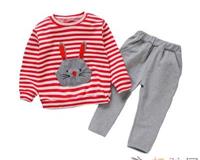 2019春秋季新款女小童条纹兔子婴幼童长袖两件套女宝宝时尚款..