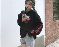 秋季韩版宽松大码胖MM印花个性长袖卫衣女上衣..