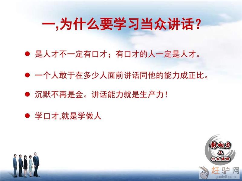 其实不是你能力不强,也不是你不优秀,而是你没有用对演说的技巧和方法,没有谁是天生的演说家,只要掌握正确的演说方法,无论男女老幼,演说能力都可以获得迅速提高,抓住属于你的机遇吧!