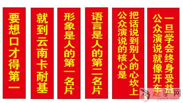 正如美国著名成功学大师卡耐基所说:“一个人的成功,15%取决于专业知识,85%取决于口才艺术欢迎www.ganlv5.com。假如你的口才好—可以使人家喜欢你,可以结交好的朋友,可以开辟前程,使你获得满意的结果。譬如你是一个律师,你的口才便吸引了一切诉讼的当事人;你是一个店主,你的口才帮助你吸引顾客。有许多热播,因为他们善于辞令,因此而擢升了职位;有许多人因此而获得荣誉,获得厚利。你不要以为这是小节,你的一生,有一大半的影响,是由于说话的艺术。”