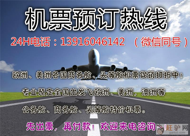 赶驴网www.ganlv5.com上海酷晟商务咨询有限公司有限公司是正规的国际航协一级代理,专业销售上海、北京、广州、香港、等中国各大城市出发到美国、欧洲、澳洲等商务舱头等舱公务舱经济舱特价机票,我们是绝对的价格优势专业的提供国际商务舱头等舱机票,保证最给力的价格,最优质先进的服务条件,我们拥有充分的、全方位的查询手段保证向您提供最及时、准确的旅行信息,我们公司提供的商务舱头等舱机票比市场价要便宜几千甚至上万欢迎www.ganlv5.com,机票查询特价舱位有限,预订从速,先出票后付款,欢迎前来咨询!