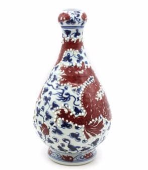 藏品知识介绍:珍珠地青花釉里红龙纹蒜头瓶