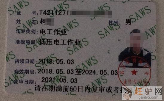 低压电工、焊工,登高架设,制冷等IC卡式证件,报考程序正规,真实有效,全国通用,可在官网查询,三个月左右出证!www.ganlv5.com