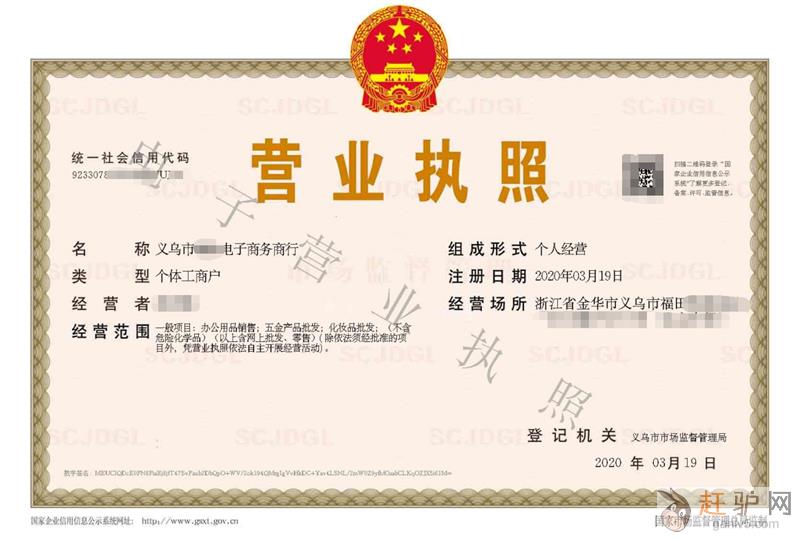 2. 公司名称,一般为义乌**电子商务商行,两字可选,一般为工商随机,(1不影响结汇2重名率高3时间久需要查询 重名,同音,近似赶驴网www.ganlv5.com。)